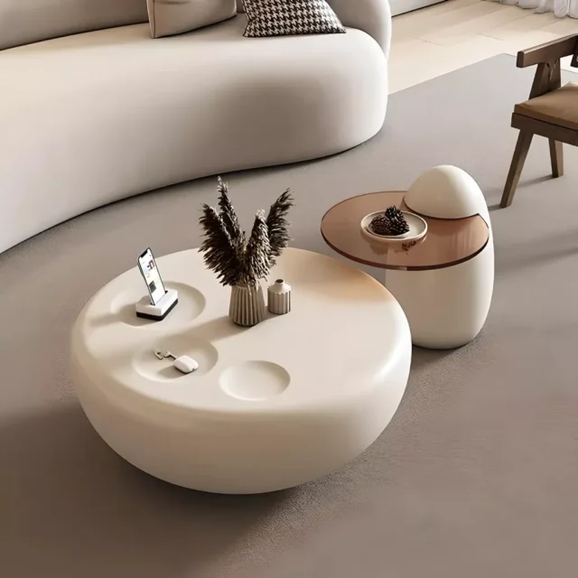 This round coffee table is more than just a functional piece of furniture—it’s a statement. The luxurious faux marble finish and minimalist design make it a perfect fit for a variety of interior styles, from chic modern to cozy minimalist. The unique bowl shape combined with its decorative vertical texture creates a striking look that catches the eye, while its sturdy build ensures long-lasting use. Whether you’re hosting a gathering or enjoying a quiet evening, this table is the perfect place to hold your drinks, books, or décor pieces.