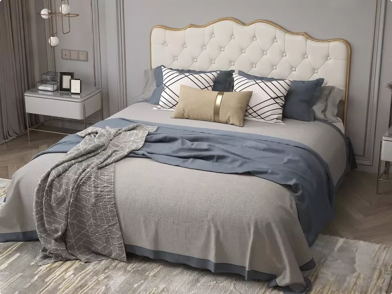 At the heart of this bed is its classic pull-button backrest, upholstered in high-quality, soft, and thick leather that invites you to relax in luxury. The backrest is generously filled with high-elastic sponge, providing unparalleled comfort and support. The bed’s frame, made from gilded steel pipe, offers robust stability, while the solid wood ribs ensure a soft yet strong foundation for restful sleep.
