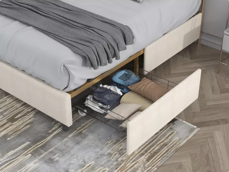 As a lover of modern furniture, this bed surpassed my expectations. The sleek design, combined with the practicality of storage drawers, makes it a standout piece in my bedroom. It's not just a bed; it's a statement piece that adds character and elegance. Its sleek, modern appearance transformed my bedroom, and the storage drawers underneath are incredibly useful for keeping my space tidy. The bed's premium fabric and sturdy construction are evident, making it a valuable addition to my home. I'm beyond pleased with this purchase.