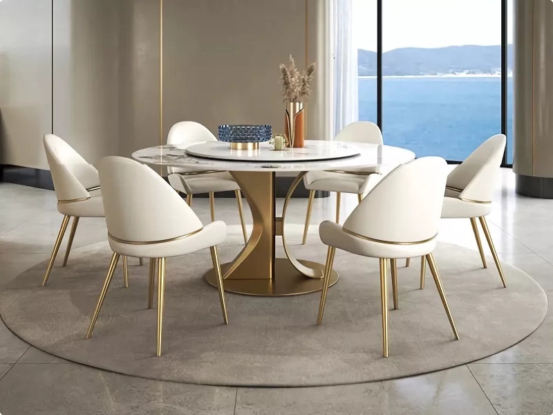 The Luxury Marble Round Dining Table is a dream come true for my dining space. It's not only visually stunning with its gold frame but also incredibly functional with the turntable. The turntable is not just convenient but also a unique feature that all my guests admire. It's the perfect blend of style and convenience.