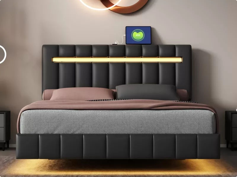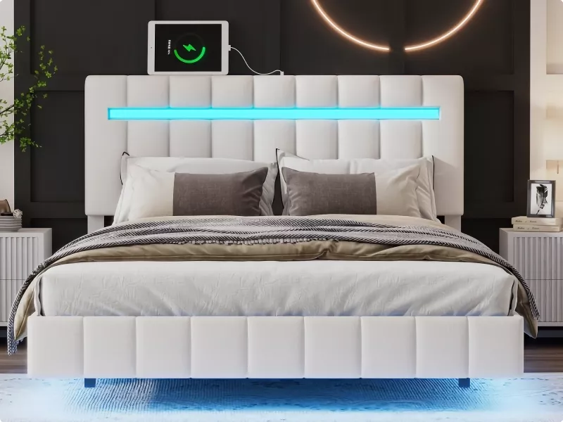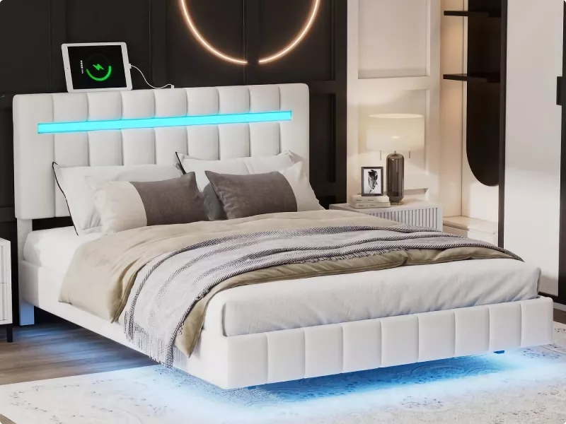 I took the plunge and decided to revamp my bedroom with this LED upholstered platform bed frame, and let me tell you, it was the best decision I've made in a while! From the moment it arrived, the floating illusion design completely transformed my space, giving it that sleek, modern edge I've always dreamed of. The addition of LED lights isn't just a visual treat; it's revolutionized my nighttime routine with its cozy, adjustable glow and the USB charging ports right in the headboard are a lifesaver for someone like me who's always on their phone or tablet before bed. The setup was surprisingly simple, and I was impressed by how solid and well-made everything felt. This bed isn't just furniture; it's a statement piece that I'm confident will stand the test of time. Absolutely thrilled with my new bedroom look!😊